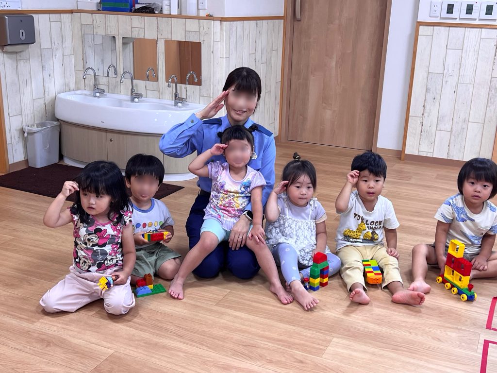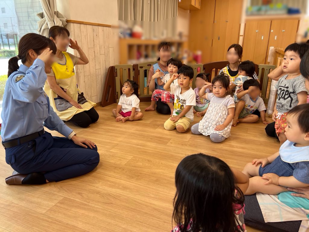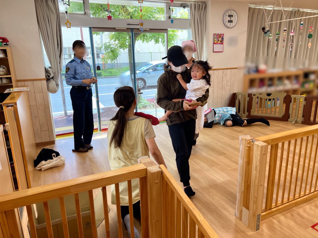 ※福岡中央警察署の警察官にご来園頂き、不審者訓練の様子を見ていただいた上で、たくさんのアドバイスをいただきました。お忙しい中のご協力に感謝いたします。