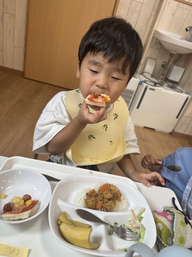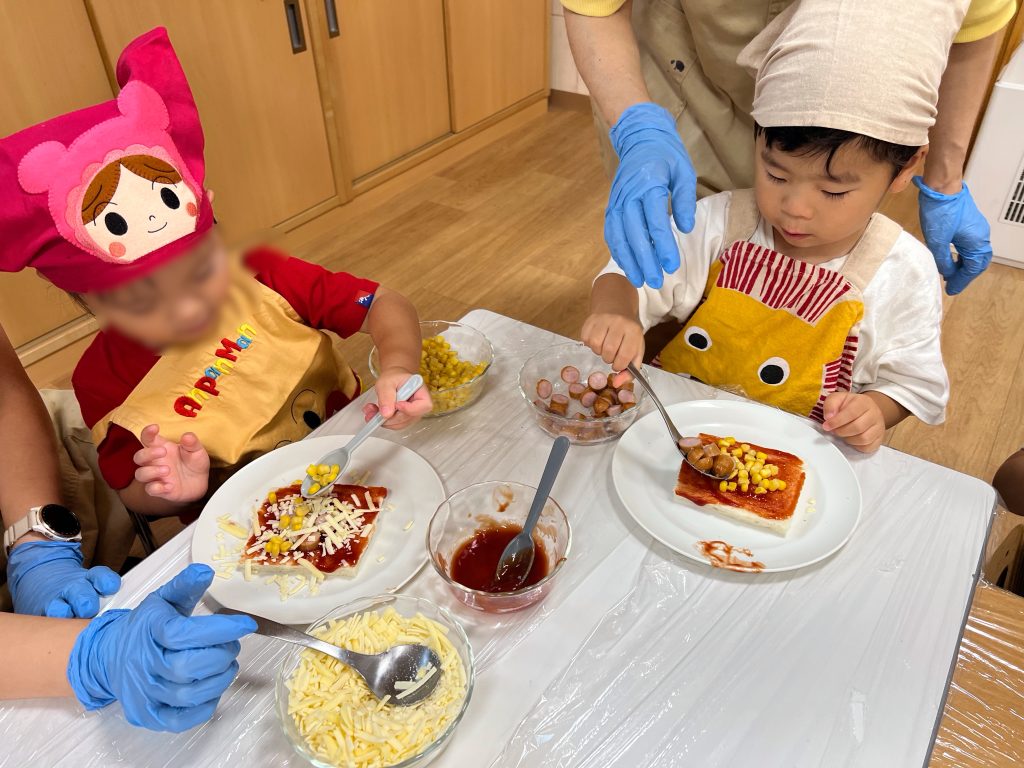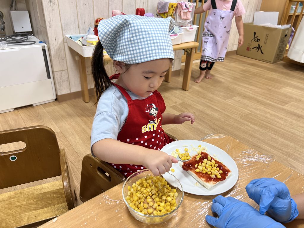 ■9月10日【クッキング~ピザトースト🍕】2歳児(うさぎ組🐰)