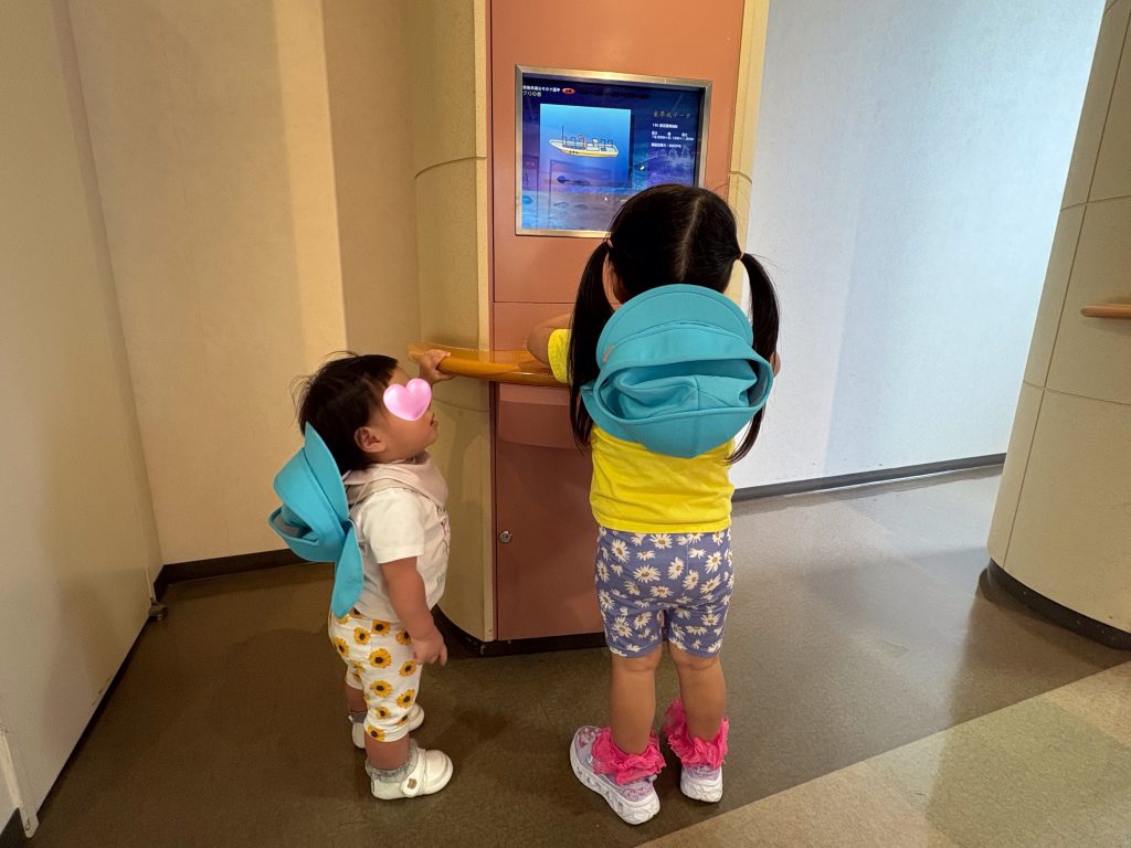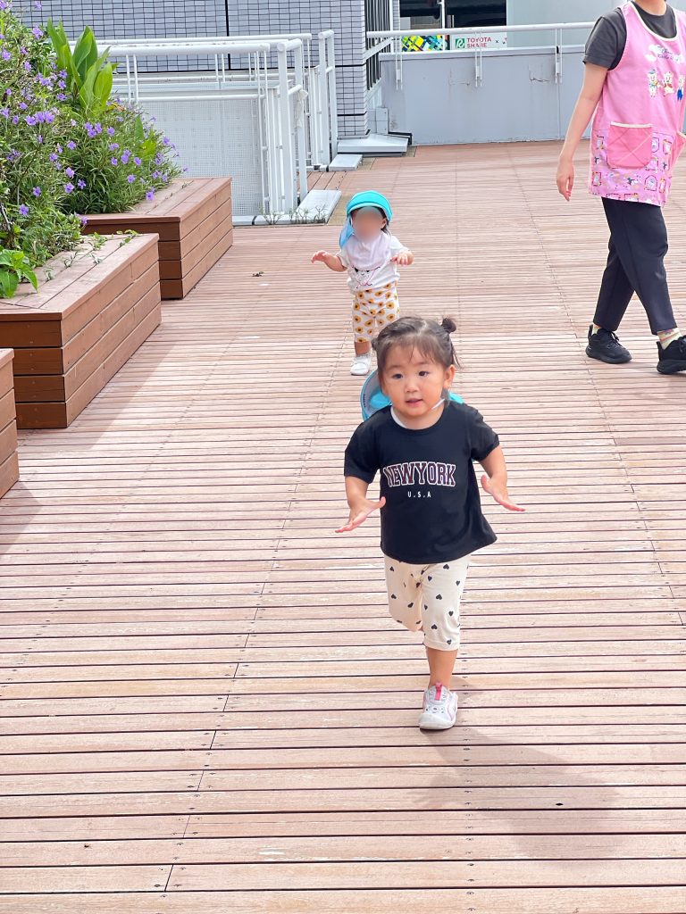 お彼岸に入り、ようやく戸外活動がしやすい気候になってきました。当園は、船が見える博多港や福岡中央卸売鮮魚市場が近く、通常の戸外活動の場としても利用しています。この日は鮮魚会館2階のウッドデッキで遊びました。船やお魚、漁などの情報が見られる『魚っちんぐプラザ』にも行きましたよ!