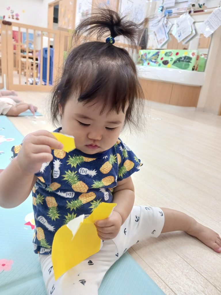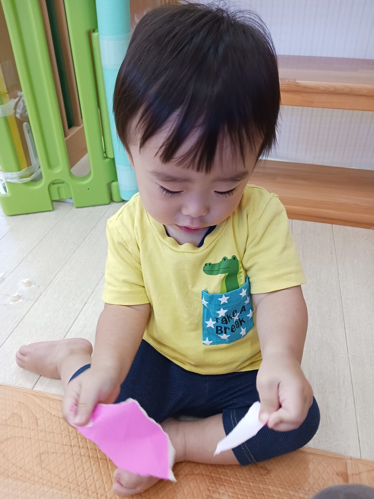 ひよこ組 折り紙をビリビリビリ~~それから先生にお任せすると・・・