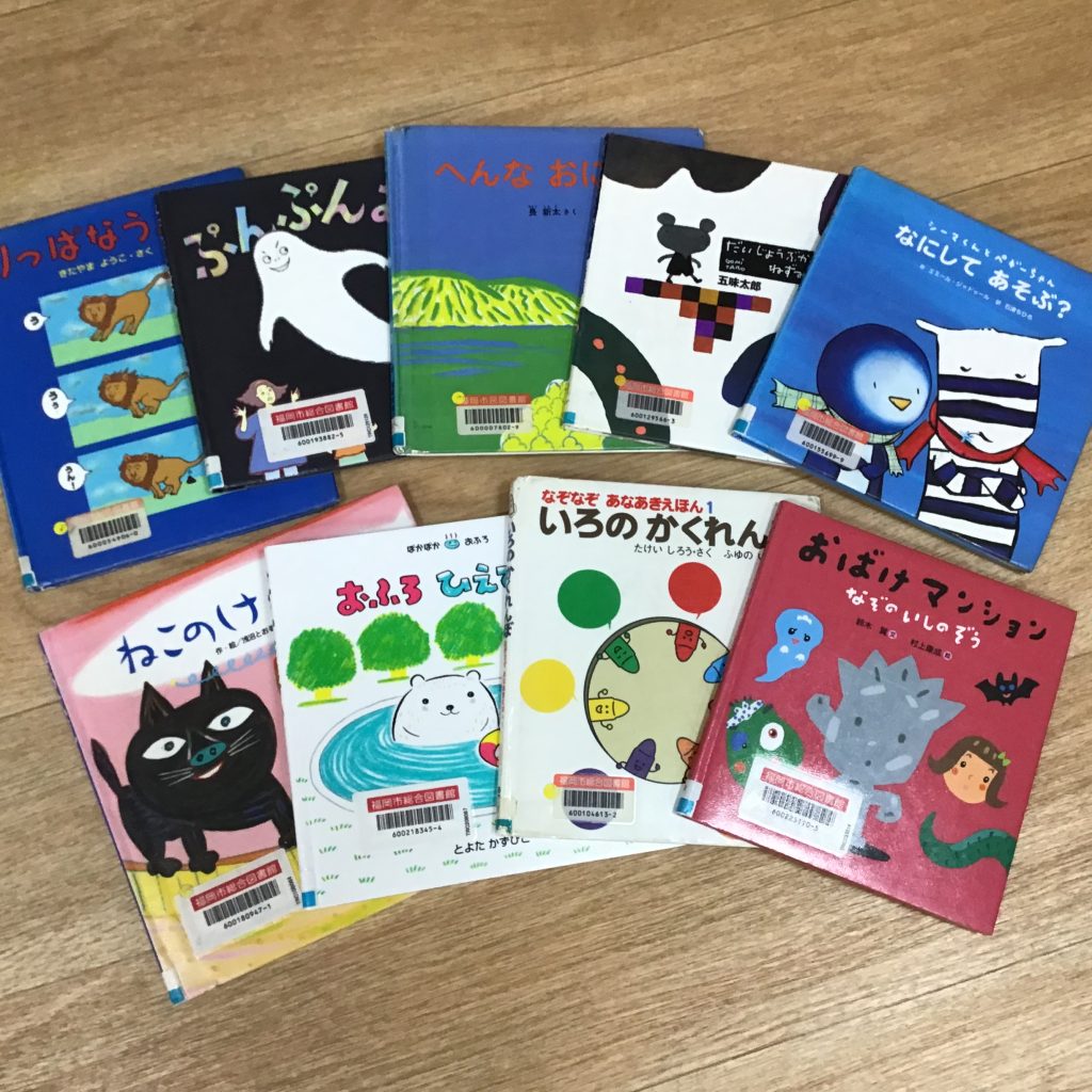 今年から、福岡市総合図書館の団体貸し出しの利用を始めました。早速、絵本100冊、紙芝居30部をお借りしました! 子どもたちは大喜び! 今後も継続して利用していきます。